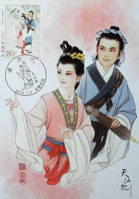 《天仙配》为安庆黄梅戏戏曲传统经典剧目。内容讲的是董永卖身葬父,玉帝的第七女(七仙女)深为同情,私自下凡,在槐树下与董结为夫妇。一百日后,玉帝派托塔天王和四大金刚逼迫七仙女返回天庭,夫妻在槐树下忍痛分别。董永行孝故事在魏晋时已见于曹植《灵芝篇》和干宝《搜神记》。戏曲或名《织锦记》、《百日缘》、《槐荫树》。黄梅戏整理本较有影响。有同名电影和电视剧。 九:嫦娥奔月