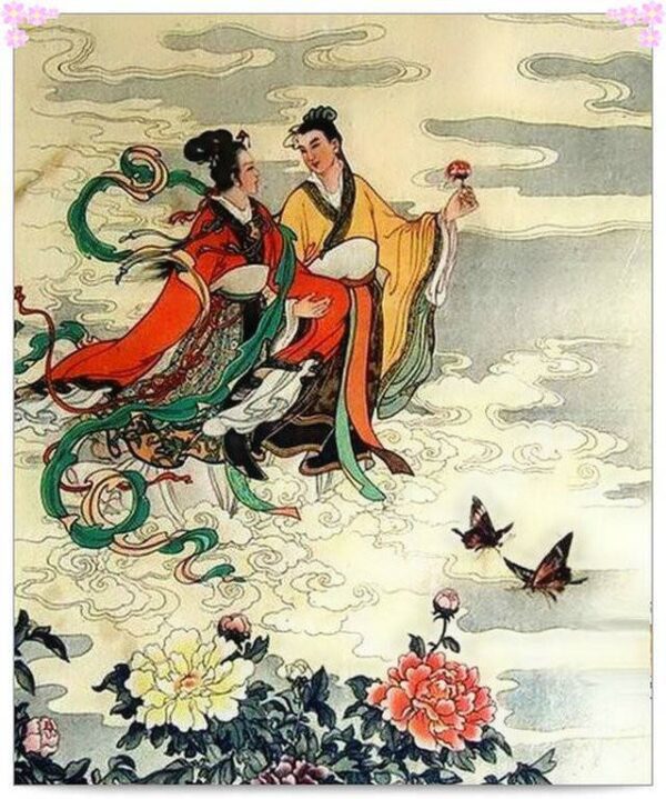 临别时,立下誓言:生不能同衾,死也要同穴!后梁山伯被朝廷召为鄞县(今宁波市鄞州区)令。然山伯忧郁成疾,不久身亡。遗命葬鄮城九龙墟。英台闻山伯噩耗,誓以身殉。英台被迫出嫁时,绕道去梁山伯墓前祭奠,在祝英台哀恸感应下,风雨雷电大作,坟墓爆裂,英台翩然跃入坟中,墓复合拢,风停雨霁,彩虹高悬,梁祝化为蝴蝶,在人间蹁跹飞舞。 二:牛郎织女